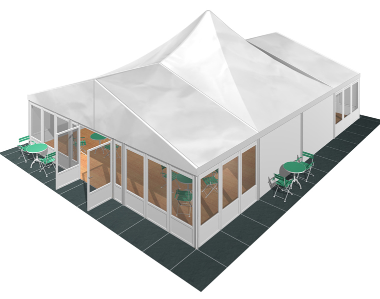 *在篷房配套上,華燁篷房廠家可提供地板、玻璃門、各種墻體。還有篷房專用空調、地毯、燈飾、承重盤、排水槽等等,也許您的需求可能與上圖所示不同,請直接聯系我們,了解此結構可用的配件。